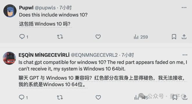 另外在 OpenAI 官推公告的评论区,有很多网友询问支不支持 Windows 10: