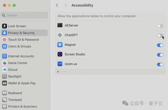 开始使用之前,需要到系统设置中为 ChatGPT 客户端开启“辅助功能”权限。