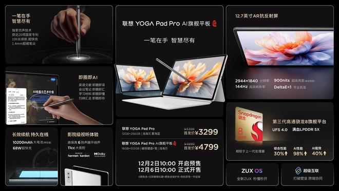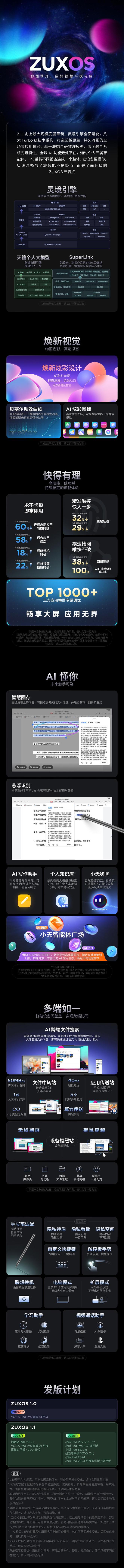 全新 ZUXOS 操作系统由联想 YOGA Pad Pro AI 元启版平板电脑首发搭载,“灵境引擎全面进化,全域 AI 无处不在”。