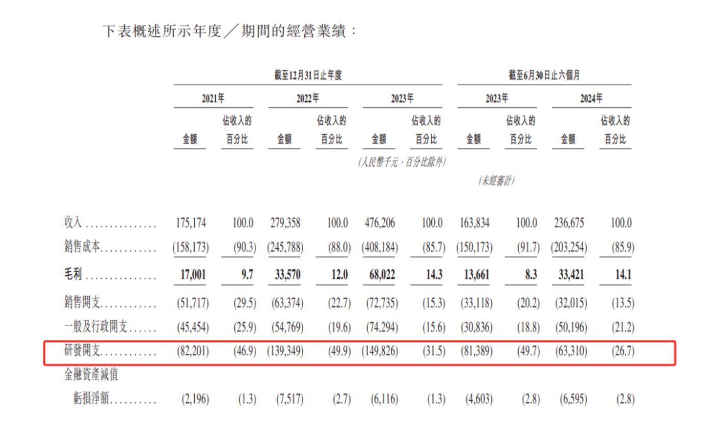 2021 年-2023 年,佑驾创新的研发支出分别为 8220.1 万元、1.39 亿元和 1.50 亿元,分别占其总收入的 46.9%、49.9% 和 31.5%。