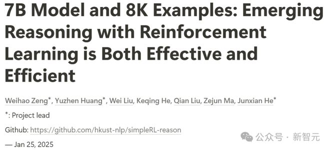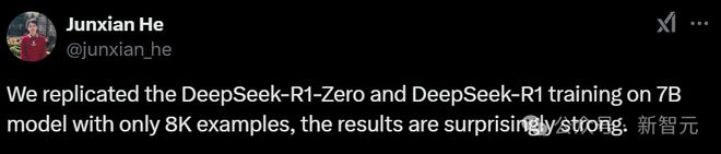 港科大助理教授何俊贤的团队(共同一作黄裕振、Weihao Zeng),只用了 8K 个样本,就在 7B 模型上复刻出了 DeepSeek-R1-Zero 和 DeepSeek-R1 的训练。
