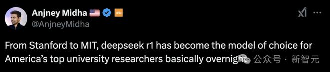 a16z 合伙人 Anjney Midha 称,一夜之间,从斯坦福到 MIT,DeepSeek R1 已经成为美国顶尖高校研究人员「首选模型」。