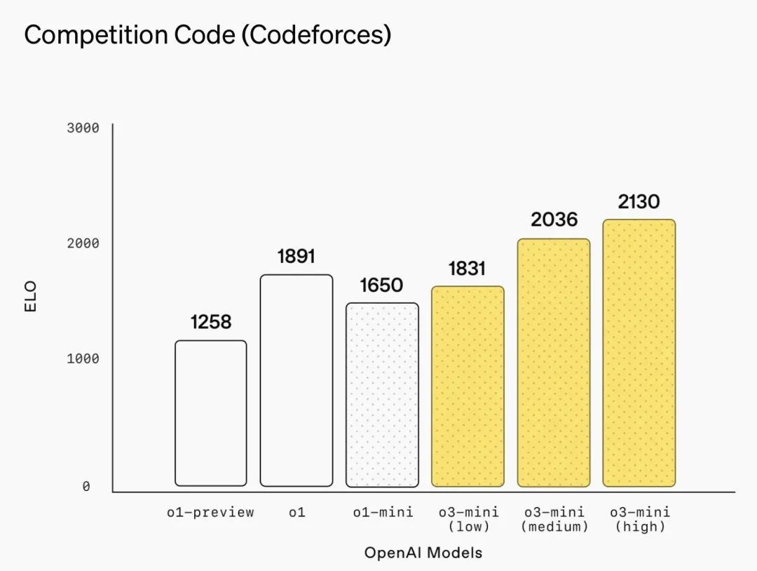 OpenAI 在官方博客中也将 o3-mini 的性能与 o1 系列进行了比较: