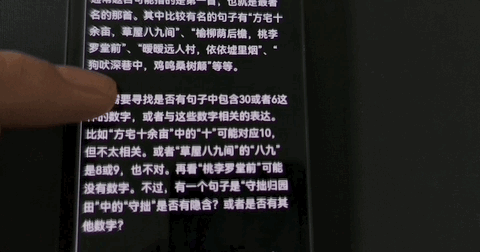 面对这样的新型题,你还别说,它还真有模有样分析了起来,每步讲解都很详细,先是成功指出余弦值为√3/2 是 30 度,后又正确找出诗中和 30 对应的是“一去三十年”。