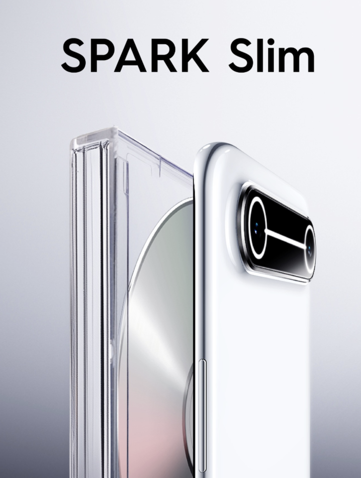 外观方面,本次传音公布了 Spark Slim 的两款配色,分别为金属银以及纯白,后置摄像头模组采用横向条状的设计,镜头凸起部分较少;整机重量仅 146g;此外,正面还配备了微弧双曲面屏幕,配合较窄的边框。