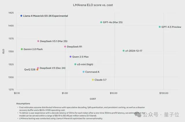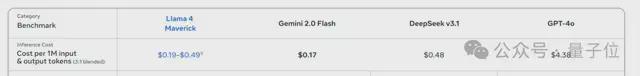 系列超大杯 Llama 4 Maverick,不仅超越了同类型号其它模型,价格还非常之美丽。