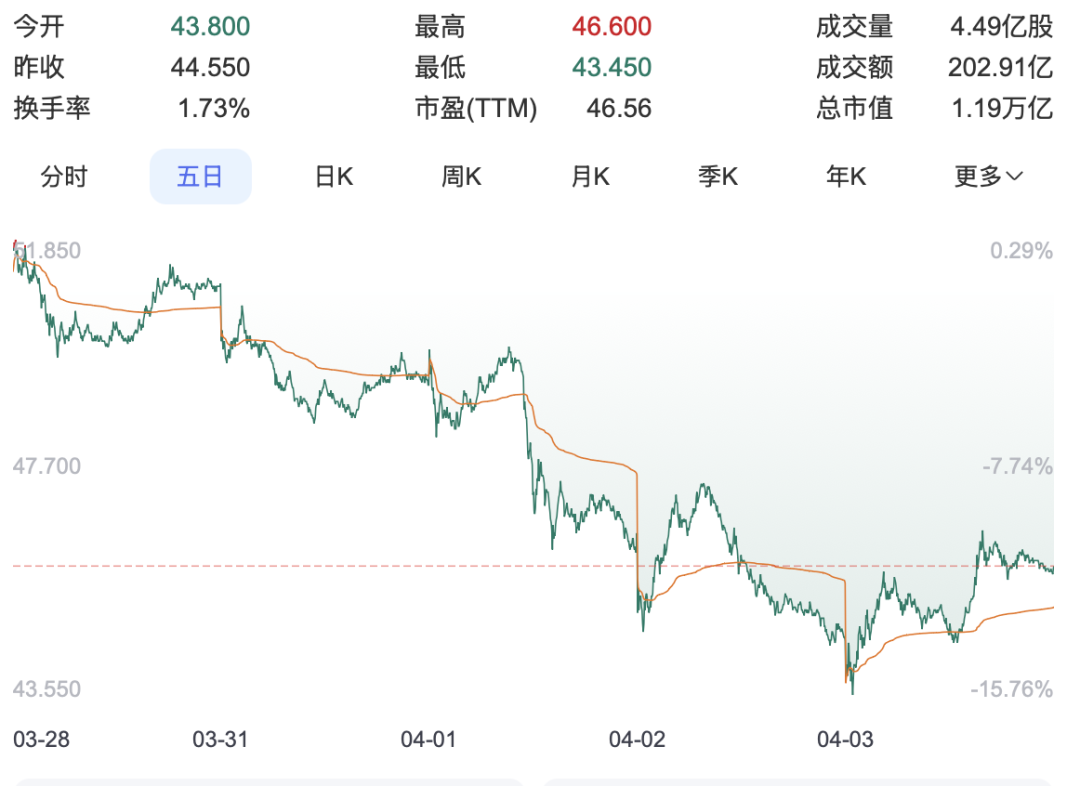 4 月 2 日,截至收盘,小米股报 44.55 港元/股,较 2025 年 3 月 19 日的历史最高价 59.45 港元/股已跌去 25.06%。按最新市值计算,小米集团总市值近两天缩水超 1200 亿港元。