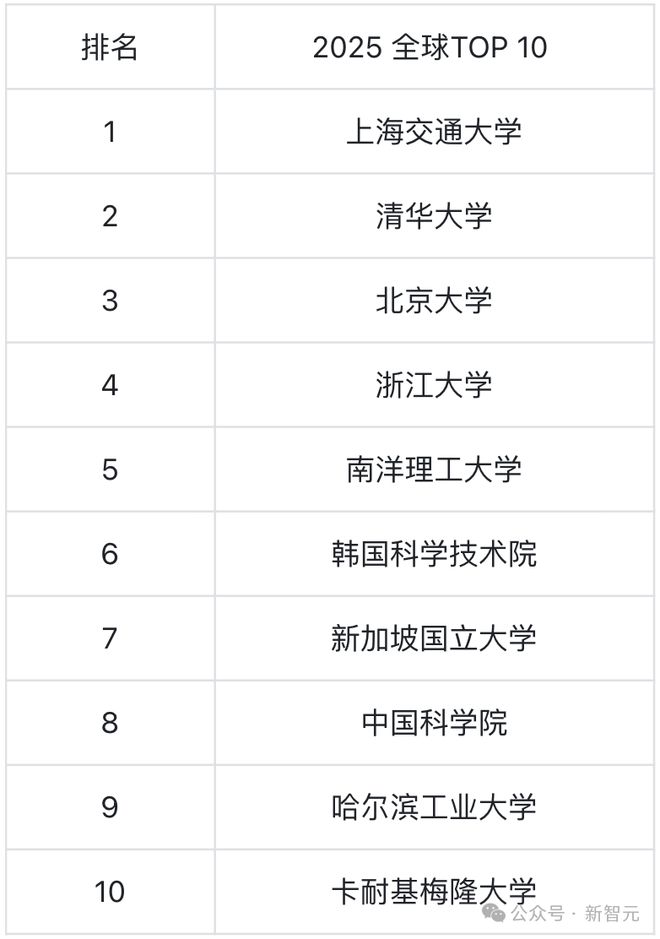 就全球 AI 领域表现来看,中国高校非常亮眼,在全球排名前十中包揽六席。