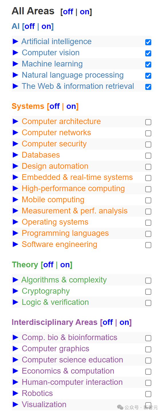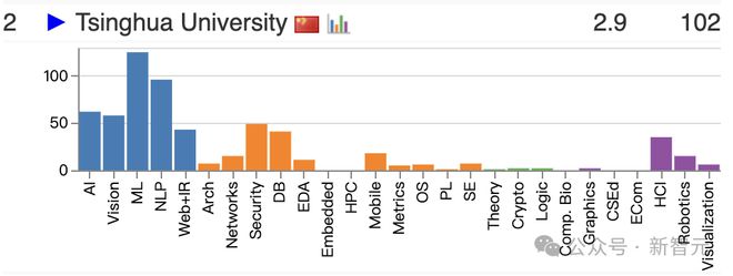 CSRanking 的细分排名分为4 大类(27 项小细分),分别为 AI、系统、理论和跨学科领域。