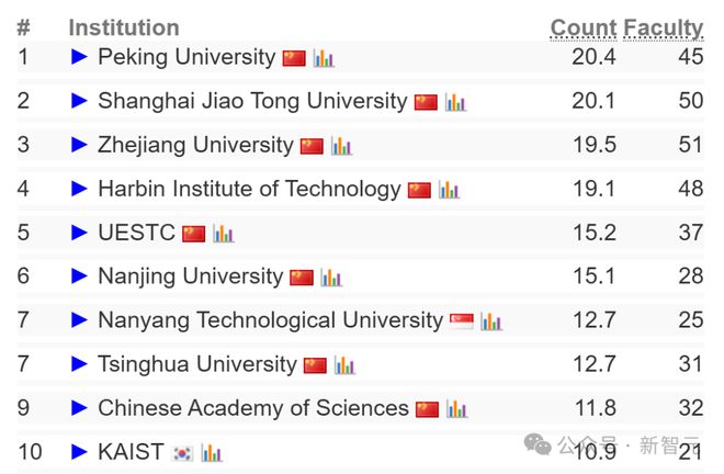 上交清华北大浙大拿下前四,中国科学院、哈工大冲进全球 AI 领域的 TOP 10。