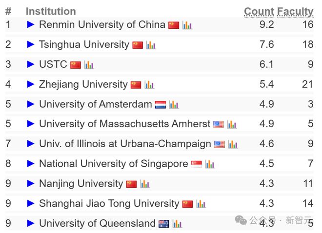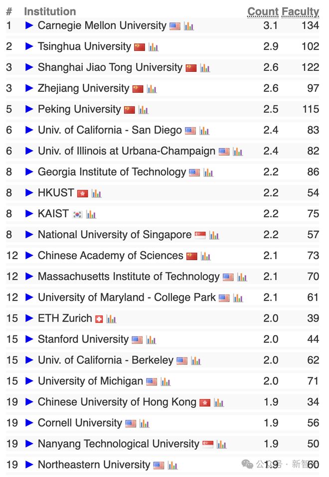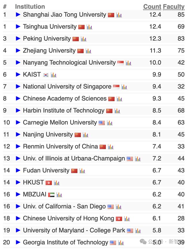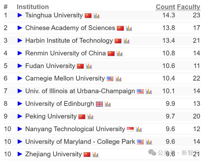 中国高校/机构继续包揽多个席位,其中清华排名第2,上交大/浙大并列第3,北大第5。
