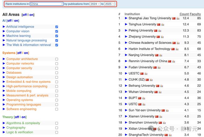 地址:https://csrankings.org/#/fromyear/2014/toyear/2025/index?all&world