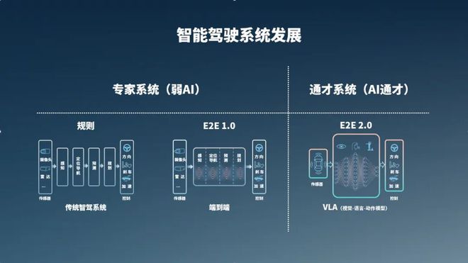 那么,底层技术的参差是国内 VLA 可以跨越的吗?FSD V13 跟 VLA 在业界都被视为智驾大模型阶段的产物。在周光看来,VLA 的能力使其成为“通才系统”,即在垂直领域内具备广泛的场景适应性。