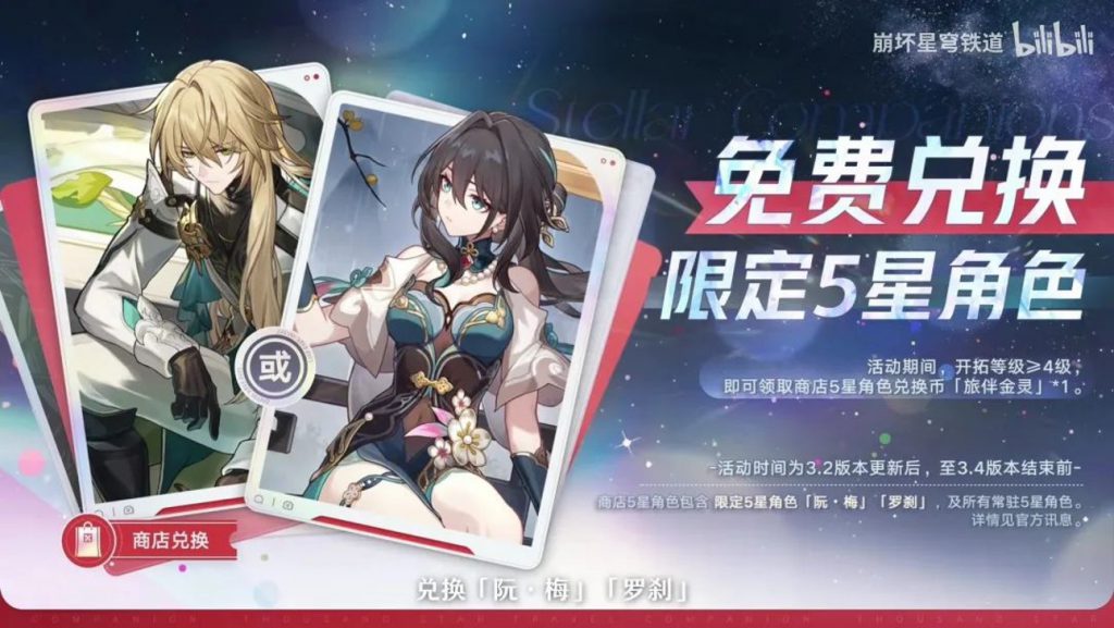 说回《崩铁》,游戏能在今天取得如此优异的成绩,自然和游戏内的内容更新、游戏运营息息相关。不得不说,这次《崩铁》项目组还是相当下血本,首先是游戏内的福利规模比一周年的力度要更高,这次除了签到赠送 30 抽(20 抽+等价于 10 抽的星琼)之外,还额外赠送了往期限定 5 星角色(罗刹或阮梅)。
