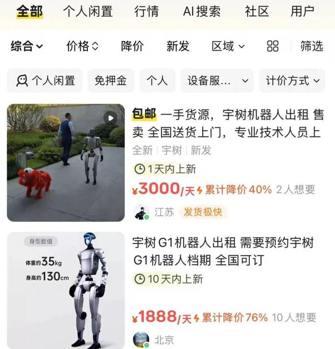 张璐却铁了心要拥有一台人形机器人。网络上的“机器人商业模式”给了她信心,很多租赁机器人的二手商家,日租金从几千元至一两万不等。一位出租宇树机器人的普通消费者还透露,按租金 8000 元/日计算,只要出租 40 天,购买一台机器人的本钱就能赚回来。