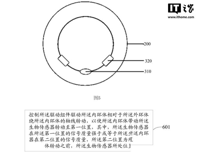 内环通过磁线圈和无刷电机机制实现精准旋转,灵活调整传感器位置以优化数据采集。这种自适应设计尤其适合长期佩戴,能减少因戒指滑动或位置偏差导致的监测误差。IT 之家附上相关专利设计图如下: