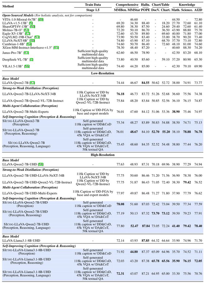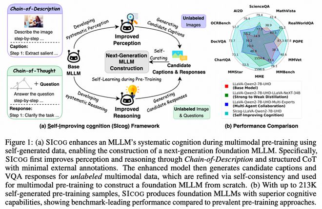 感知与推理一体优化:不再局限于感知能力的提升,SICOG 在预训练阶段即融合「感知+推理」,模拟人类认知流程,使模型对图文、图问等复杂任务具备更强泛化与应变能力。