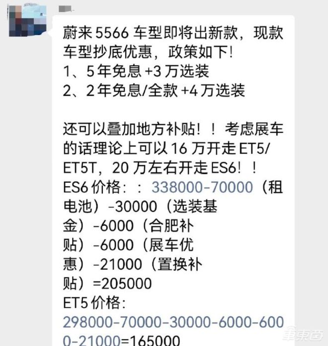 ▲蔚来销售给出的车型优惠幅度(图源网络)
