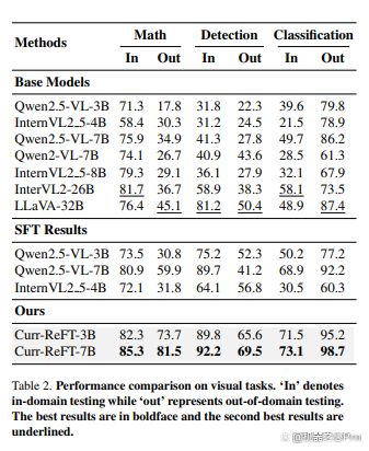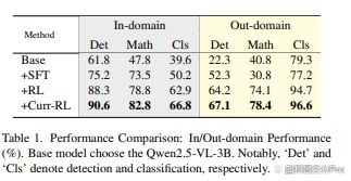 提升推理与泛化能力:实验结果显示,强化学习方法显著提升了 VLM 在分布外数据上的表现。