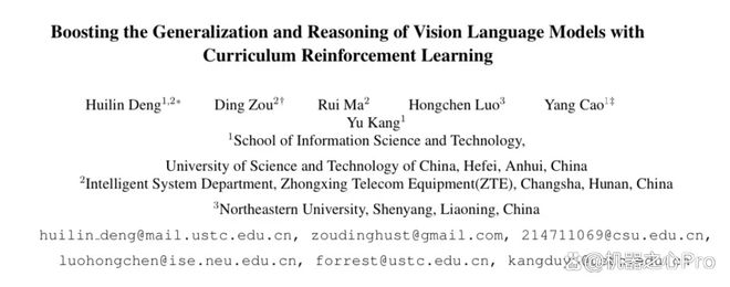 论文标题: Boosting the Generalization and Reasoning of Vision Language Models with Curriculum Reinforcement Learning