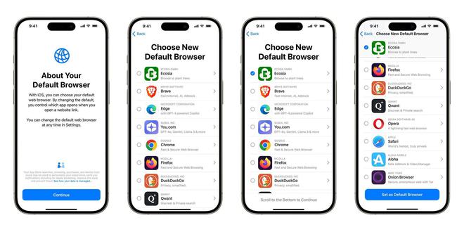 IT 之家援引博文介绍,苹果为迎合《数字市场法》,首次支持 iOS 用户侧载应用并自主选择默认浏览器,更破例开放欧盟区第三方浏览器使用非 WebKit 引擎(其他地区仍强制使用 Safari 内核)。