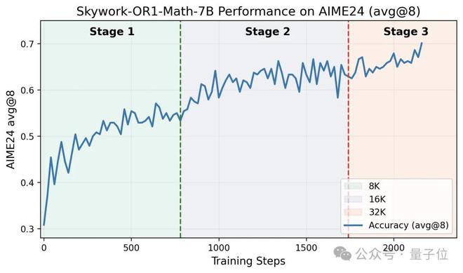 在评测方面,Skywork-OR1系列模型引入avg@k作为核心评估指标,用于衡量模型在进行k次尝试时成功解决问题的平均表现