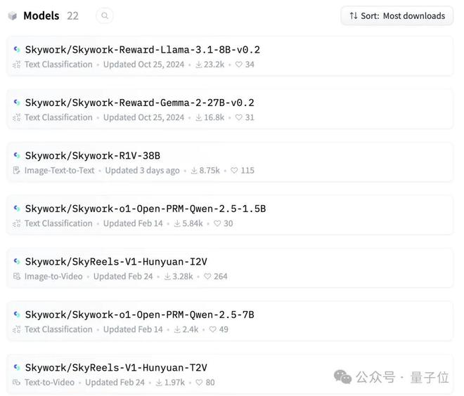 在 Hugging Face 上,昆仑万维开源模型的下载量相当可观,累计上月下载量超过 7 万。