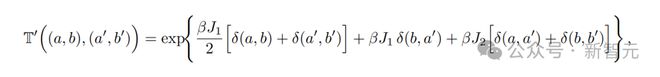 为了构建转移矩阵,研究者使用了重叠对的形式化方法来处理方程(1),每个单位格有一个自旋,得到转移矩阵T。