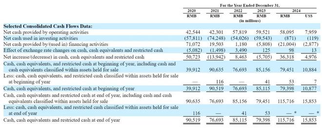 截至 2024 年 12 月 31 日,京东集团持有的现金及现金等价物、受限制现金为 1157.16 亿元(约 158.53 亿美元)。