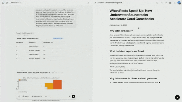 o3 基于已有的了解——潜水和演奏音乐,主动思考并调用工具,找出了一些相关的有趣内容。