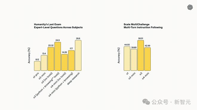 此外,OpenAI 通过强化学习训练,让 o3 和 o4-mini 掌握了工具使用的智慧——不仅学会「如何用」,更懂得「何时用」。