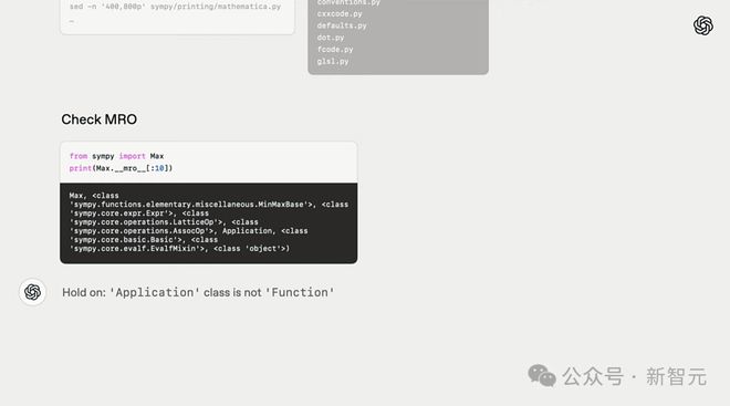 然后,它发现一可以 mro 的解释类继承信息的 Python 结构,基于已有的世界知识,找到了问题所在。