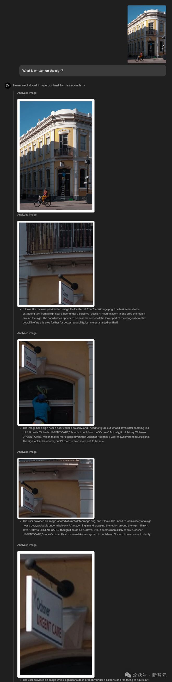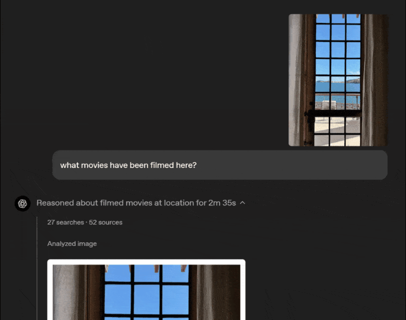 它能将高级推理与网页搜索、图像处理等工具无缝结合,自动放大、裁剪、翻转或优化你的图片,哪怕照片不完美也能挖掘出有用信息。