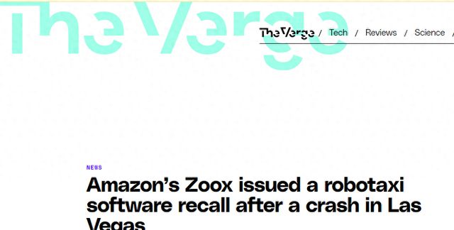 近日,亚马逊旗下自动驾驶出租车公司 Zoox 宣布,因一起自动驾驶出租车与载客车辆相撞的事故,对旗下全部 270 辆汽车发起软件召回。此次召回事件再次引发了公众对自动驾驶汽车安全性的关注。
