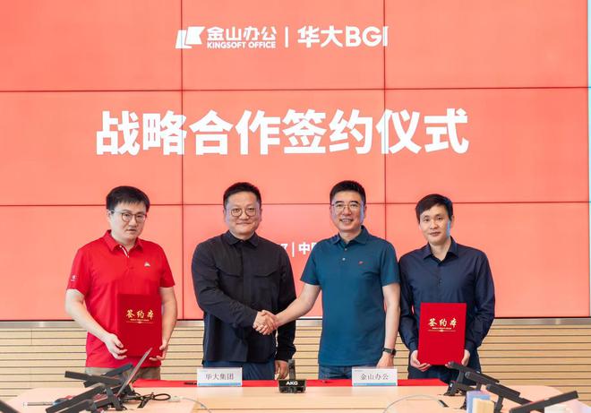 5 月 8 日消息,近日,金山办公、华大集团在深圳完成战略签约,双方将充分发挥各自优势,围绕生命科学领域的办公场景,加速 AI 能力的深入应用与创新发展。