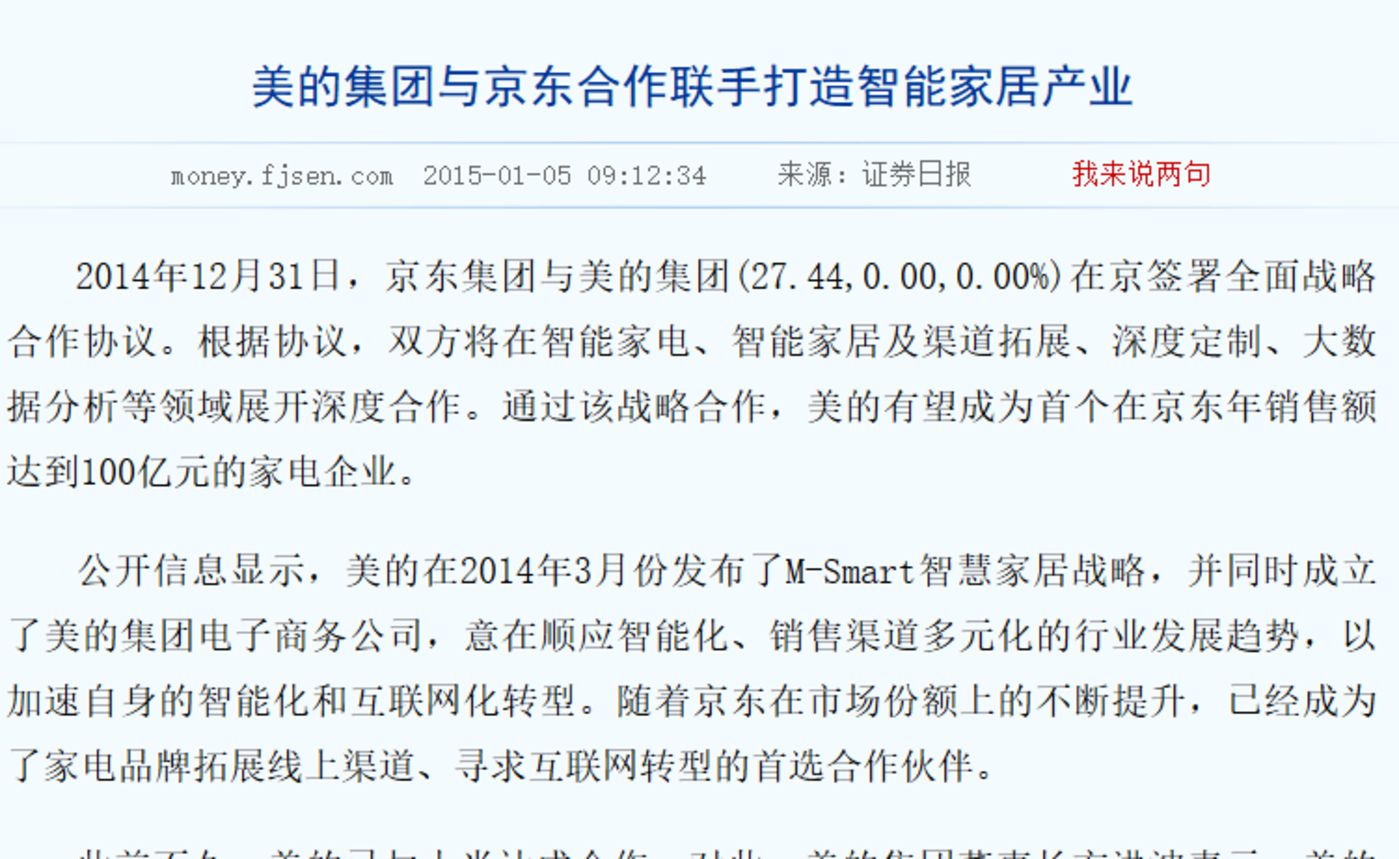 2015 年,美的学习小米,开始主动拥抱“互联网+”概念;