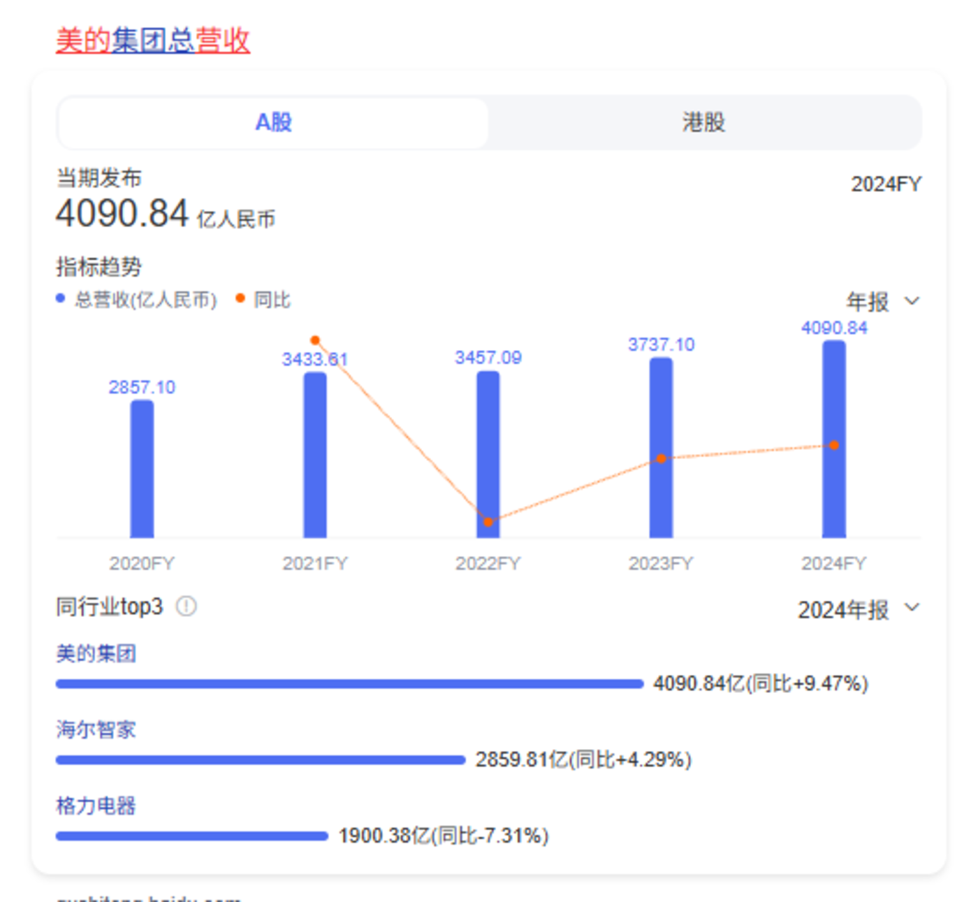 据数据显示:2024 年,美的营收达到 4091 亿,净利润为 385 亿,相较于 2023 年同比增长了 9.5%、14.3%。要知道,在 2012 年,美的营收只有 680.7 亿,净利润只有 34.8 亿。