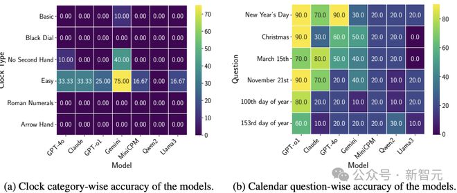 初步发现表明:尽管某些模型在时钟读时或日历问答中展现潜力,但根本问题依然存在。