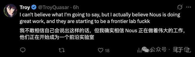 对此,有网友表示,Nous Research 有潜力成为新的前沿 AI 实验室。