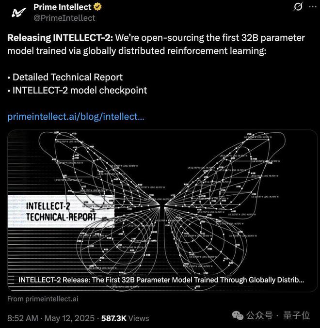 就在几天前,Prime Intellect 发布了首个分布式 RL 训练模型INTELLEC-2,引起了广泛关注。