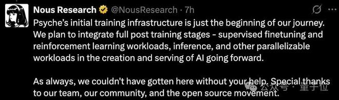 Nous Research 也称 Psyche 初始训练只是起点,后续计划整合监督微调、强化学习等完整的训练后阶段工作,以及推理和其他可并行工作负载。
