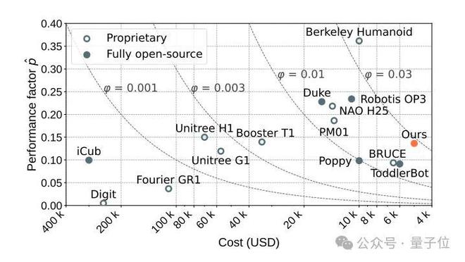 总成本被压缩到 5000 美元以下,所有材料都能由 3D 打印或在线购物平台(如亚马逊、淘宝)一键获取,和同类产品相比,以相对低的价格就实现了高性能因子。