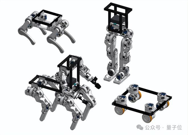 此外 BHL 仅需电源线和 CAN 信号线就可以串接多个执行器,从而可以轻松变身双足、四足、半人马构型、移动基座平台等多种形态。