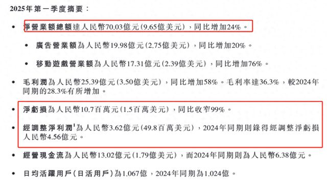 2025 年一季度,哔哩哔哩实现净营业额总额 70.03 亿元,同比增长 24%。
