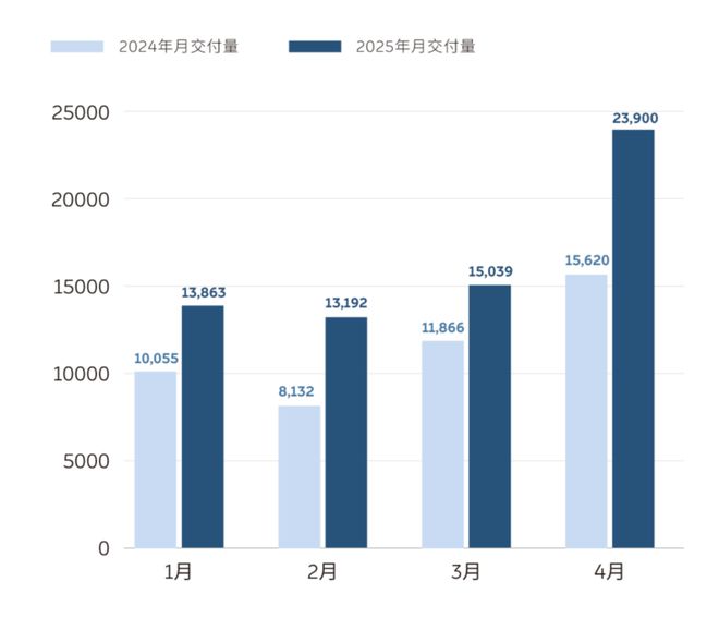 蔚来 2025 年月交付量
