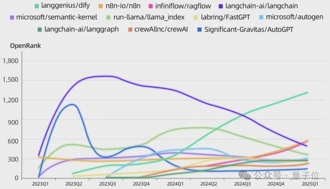 具体来说,2025 年,Dify、RAGFlow 等平台通过低代码工作流和企业级服务的落地开始主导市场;而以 LangChain 和 LlamaIndex 为代表的传统开发框架日渐式微。
