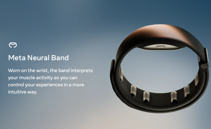 这款腕带通过读取腕部肌肉电信号,辅助陀螺仪识别移动,让用户用细微的手指动作来控制眼镜界面。去年 Connect 2024 大会上,Meta 已展示过原型腕带通过手指捏动来打字的演示,引发行业关注。