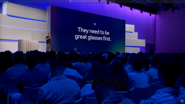 Meta Ray-Ban Display 这款凝聚数年研发的产品,被视作 Meta 抢占智能眼镜市场的重要一步。正如扎克伯格反复强调的,智能眼镜有潜力成为下一代通用计算平台(the next computing platform)。