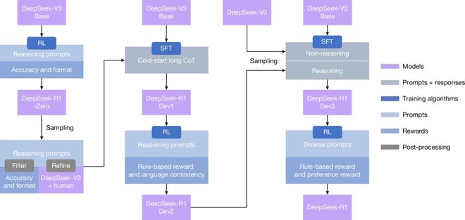 他们选择了一个强大的基础模型 DeepSeek-V3 Base,跳过了传统的 SFT 阶段。