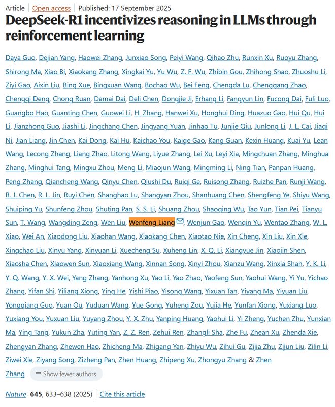 刚刚,DeepSeek-R1 登上了 Nature 封面!